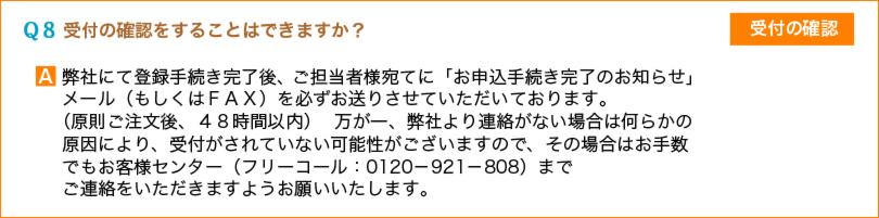 お問い合わせ後24時間以内にメールまたは電話にてご連絡させていただきます。24時間以内に連絡が無い場合には、お客様のお問い合わせメールが当社に届いていない事も考えられますので、お手数ですが当社へ直接、お問合せください。 (但し12/30~1/3は休業いたしますのでお返事は1/4以降となります)